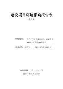 (报批稿)项目名称: 年产PVC-U管材1000 吨、PP-R 管材 300 吨、PE 管材200 吨项目 建设单位(盖章): 岳阳日欣管业有限公司 编制日期:二〇一五年十月 国家环境保护总局制 《建