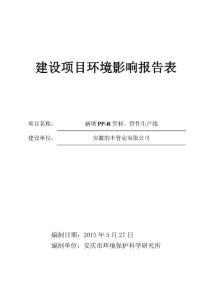 项目名称:新增PP-R 管材、管件生产线 建设单位: 安徽的丰管业有限公司 编制日期:2015 安徽的丰管业有限公司新增PP-R 管材、管件生产线 建设项目基本情况项目名称 新增PP-R管材、管件生产