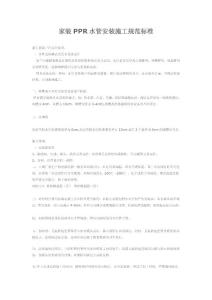 PPR施工前客户注意的事项: 一:水管走向确认及用水设备定位 客户应根据装修设计图纸及房型结构来确定水管走向,水管走向可分为吊顶排列、墙槽排列、地面排列及明管安装,选择哪种排列方法与装修队协商。 用水